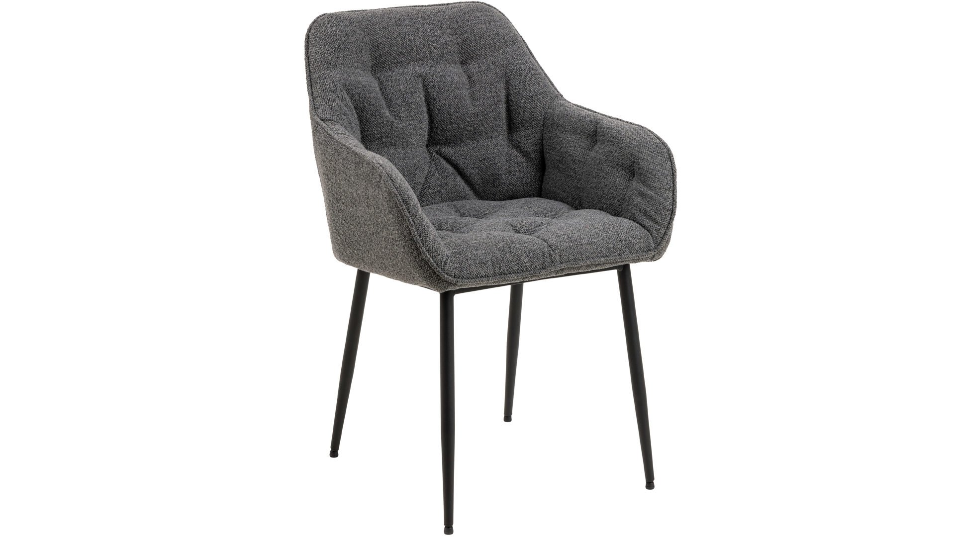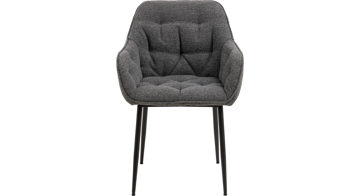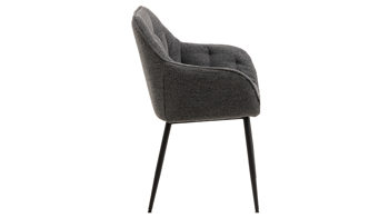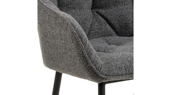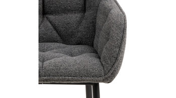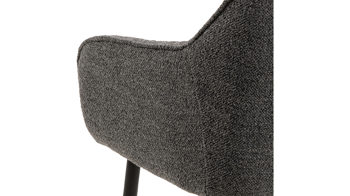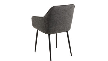 Dabei harmoniert der Polsterstuhl in seiner sanften Formensprache mit zahlreichen Einrichtungsstilen. Moderne Geradlinigkeit ergänzt er ebenso stimmig wie den beliebten Vintage-Trend. Auch farblich erlaubt der Esszimmerstuhl Brooke angenehme Freiheit beim Kombinieren: Dafür sorgt der Bezug in Anthrazit, der die gesamte Sitzschale inklusive der bequemen Armlehnen umhüllt. Die rau pulverbeschichteten Metallfüße fließen in mattem Schwarz stimmig in das Gesamtbild ein.
