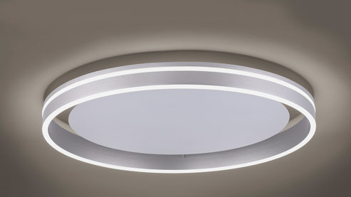 Wohnraumlampe mit zwei beleuchteten LED-Ringen