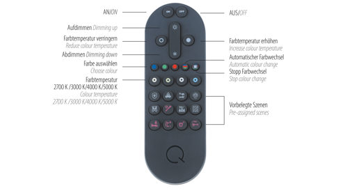 die Lichtfarbe lässt sich per Q® Funk-Fernbedienung, per App oder Sprachsteuerung dimmen