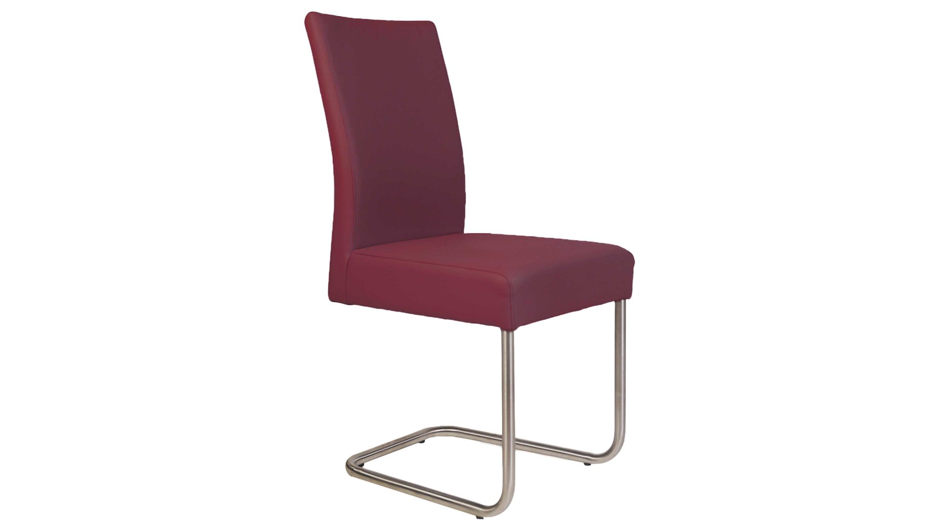 Mit dem Kunstlederbezug in feinem Kirschrot strahlt er Wärme und Eleganz aus - Eigenschaften, die jeden Raum und Stil aufwerten. Das Edelstahl-Rundrohrgestell sorgt durch die klassische Farbgebung für eine harmonische Abrundung und gewährleistet dank des robusten Materials die beim Sitzen und lockeren Schwingen erforderliche Stabilität.