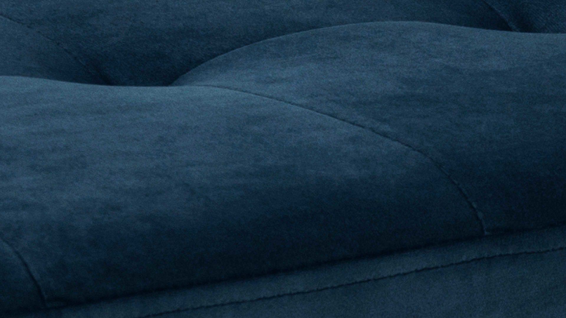 Die Polsterbank Glory begeistert mit ihrem edlen, modernen Design und bietet dazu hohen Komfort. Mattschwarze, rau pulverbeschichtete Metallfüße sorgen für die nötige Standfestigkeit. Das optische Highlight der Bank ist der marineblaue Samtbezug, der zum einen Extravaganz und zum anderen Gemütlichkeit ausstrahlt. Einen gelungenen Akzent setzt überdies die Rautenheftung der Sitzfläche.