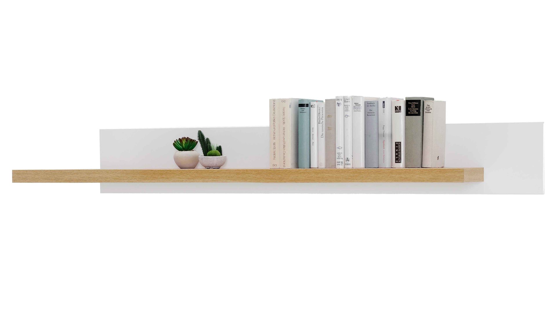 Auf dem eichefarbenen Regalboden kommt Dekoratives hervorragend zur Geltung - sei es eine Vase, ein persönliches Bild in einem Stehrahmen, eine Reihe von Büchern oder ein anderes Element mit Eyecatcher-Potenzial oder gemütlicher Ausstrahlung. Das Wandboard mit weißer Rückwand misst ca. 175 x 22 x 26 cm (LxHxT).