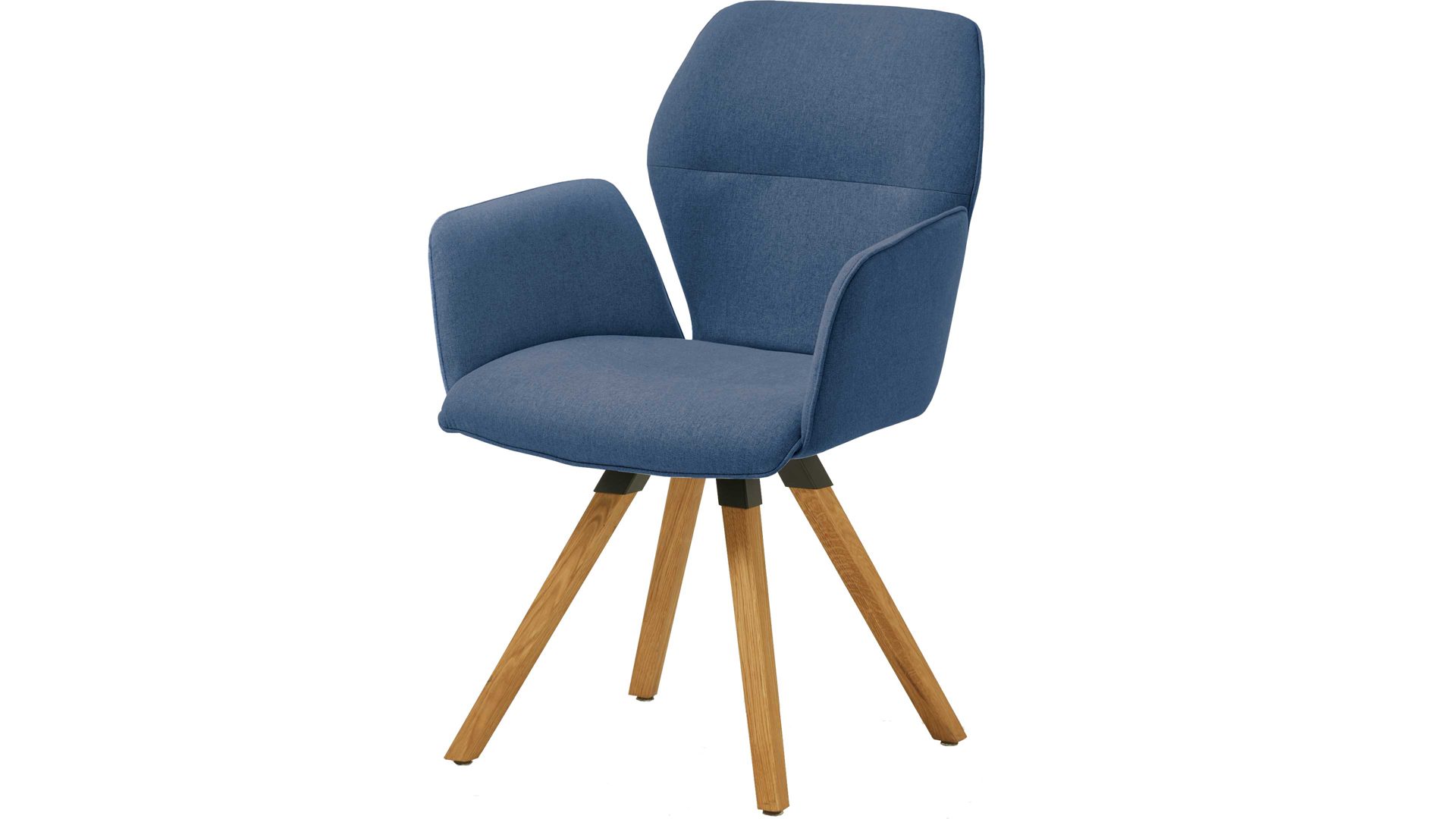 Der Armlehnstuhl Merlot präsentiert sich modern, kreativ und stilvoll designt. Er kombiniert einen blauen Webstoffbezug mit einem Stativ-Gestell aus massivem Wildeichenholz und schwarzen Akzenten. Das Echtholz sorgt für eine stabile Basis sowie für natürliches und warmes Flair im Esszimmer. Einen kühlen Kontrast erwirkt der tief-elegante Farbton des hochwertigen, angenehm weichen Stoffbezugs. Überdies unterstreicht die spezielle Formensprache des Gestells die originelle Ausstrahlung des Vierfußstuhls.