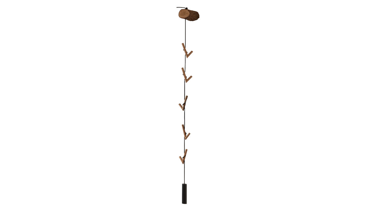 Die Metallstange, auf denen fünf Kleiderhaken aus Holz befestigt sind, wirkt kontrastierend, fügt sich aber dennoch harmonisch ins Gesamtbild ein. Auf den Haken können Sie Jacken, Mäntel und Accessoires aufhängen. Die Maße der speziellen, absolut faszinierenden Wandgarderobe betragen ca. 12 x 197 x 22 cm (BxHxT).