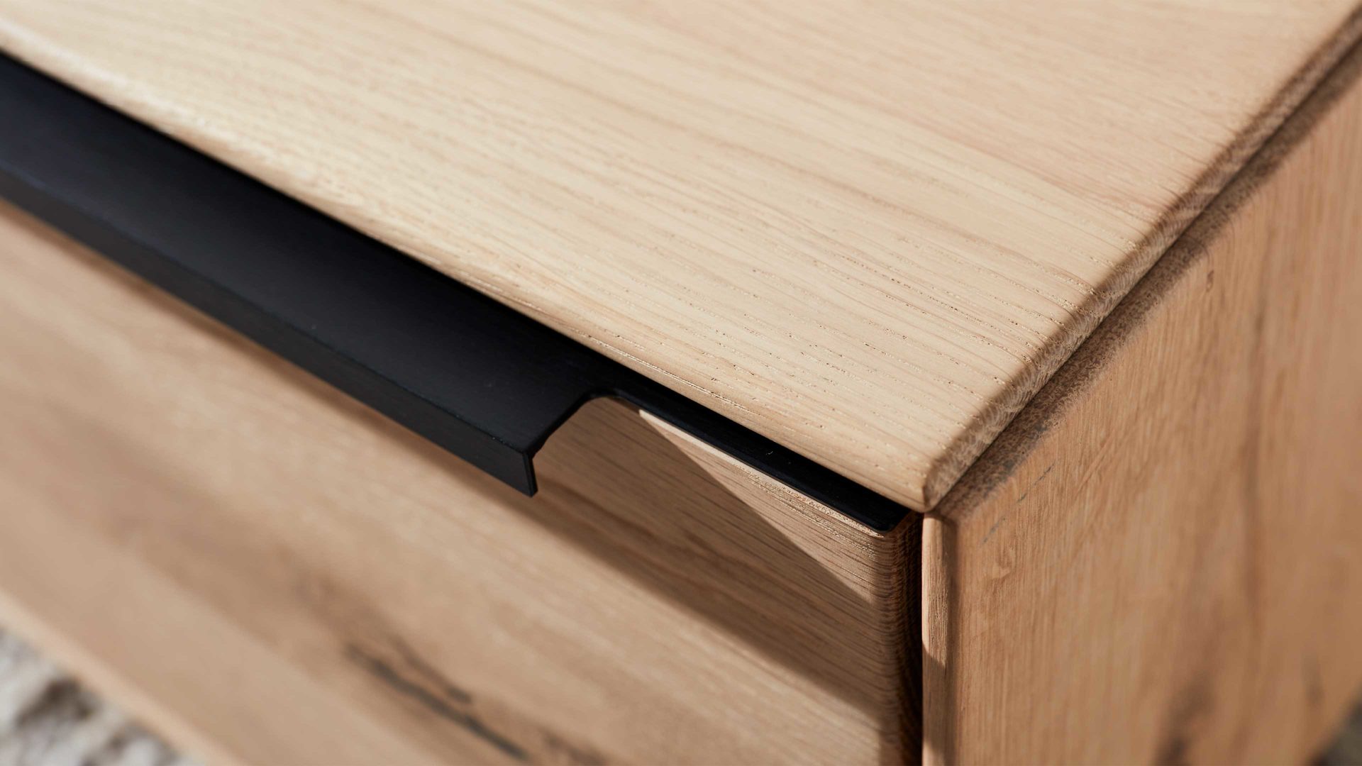 Der Couchtisch 151516 aus der Interliving Wohnzimmer Serie 2020 überzeugt durch sein harmonisches Zusammenspiel aus Massivholz-Charme und praktischen Funktionen. Gefertigt aus bianco geölter Asteiche, bringt er natürliche Wärme in dein Zuhause. Der markante Risseiche-Frontakzent und der aufliegend in die Front eingearbeitete schwarze Aluminiumgriff setzen stilvolle Akzente und verleihen dem Tisch eine moderne, elegante Ausstrahlung.