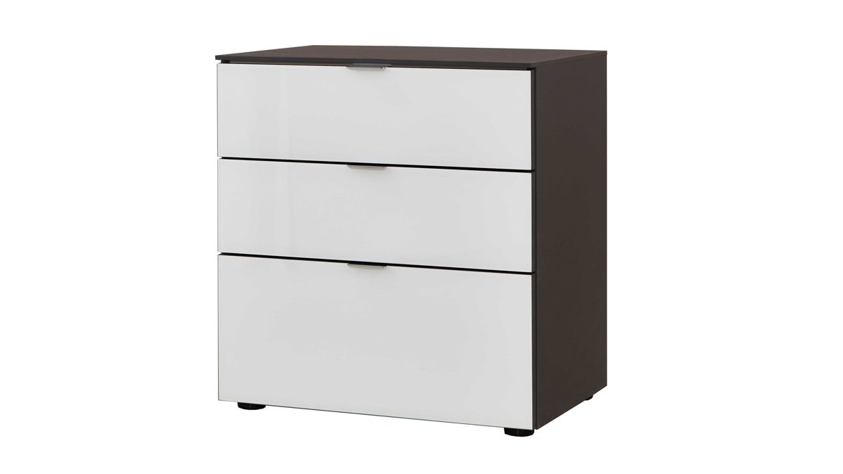 Die hochwertige STAUD Nachtkommode Media kombiniert stilvolle vulkanfarbene Kunststoffoberflächen mit alpinweißen Glasfronten und chromfarbenen Griffleisten zu einem stimmigen Ganzen. Durch die außergewöhnlichen, kontrastreichen Farben präsentiert sich der Nachtschrank besonders elegant und nobel. Er strahlt Wärme und Tiefgründigkeit aus. Überdies sind die Kunststoffoberflächen angenehm pflegeleicht.