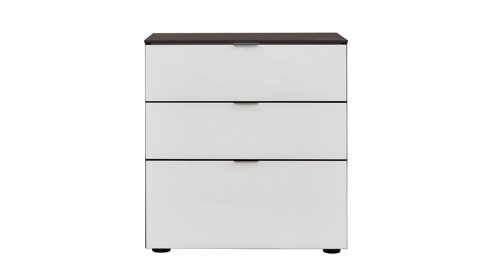 Zur Nachtkonsole gehören drei Schubladen - davon eine größere unten und zwei kleinere oben - mit praktischem Vollauszug. Darin können Sie verschiedene Gegenstände, die Sie in Bettnähe licht- und staubgeschützt aufbewahren wollen, bequem unterbringen - beispielsweise Ihre Lesebrille. Der Softeinzug sorgt dafür, dass sich die Schubkästen leichtgängig und vor allem geräuscharm schließen lassen. Mit dem Oberboden verfügen Sie über eine zusätzliche Ablagefläche, auf der etwa das Buch Platz findet, das Sie jeweils gerade lesen. Die Maße der erstklassig verarbeiteten Schubladenkommode belaufen sich auf ca. 58 x 53 x 40 cm (BxHxT).
