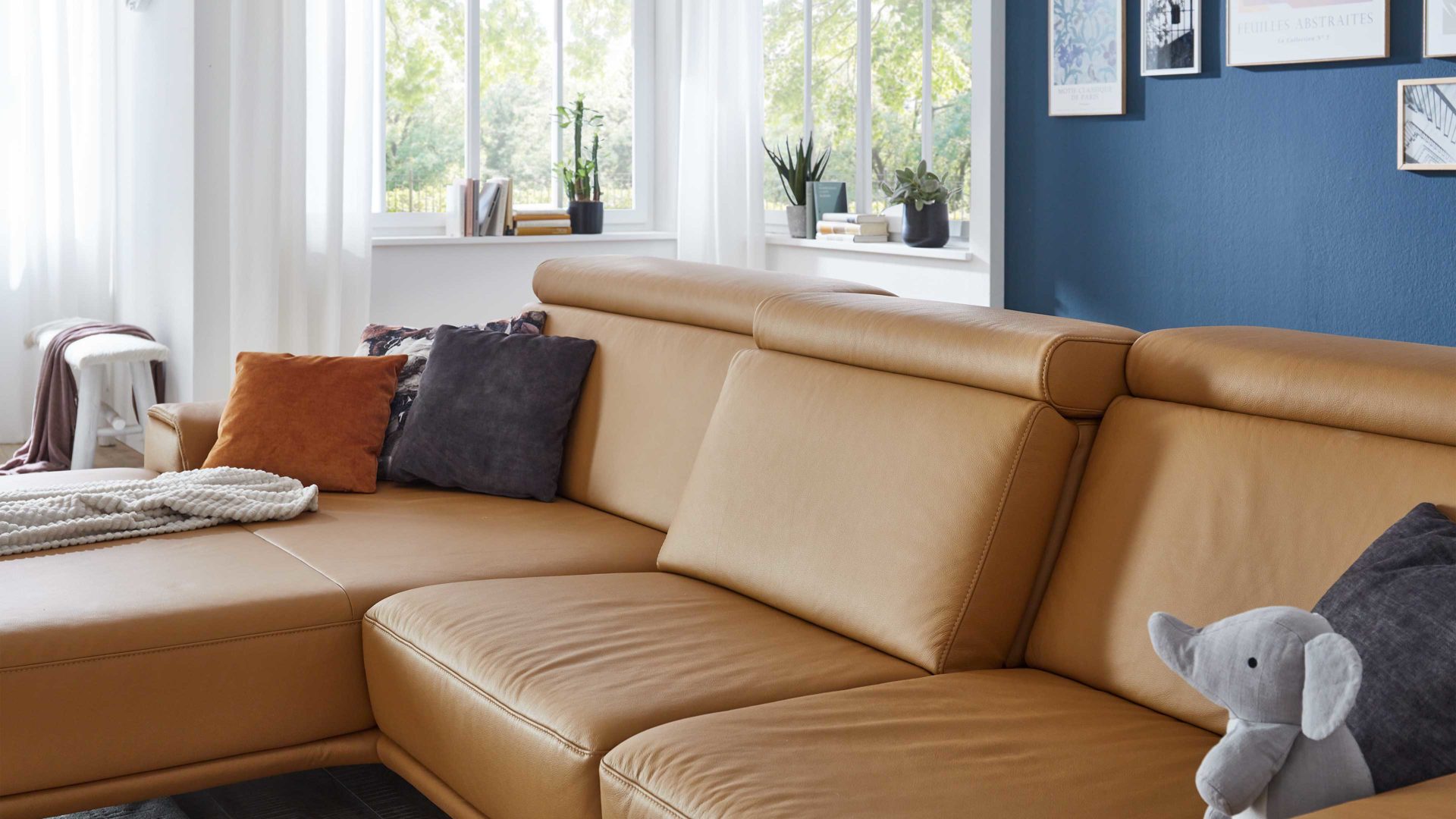 Durch leichtes Anheben und Vorziehen des Rückenkissens erweitert sich die Sitztiefe.