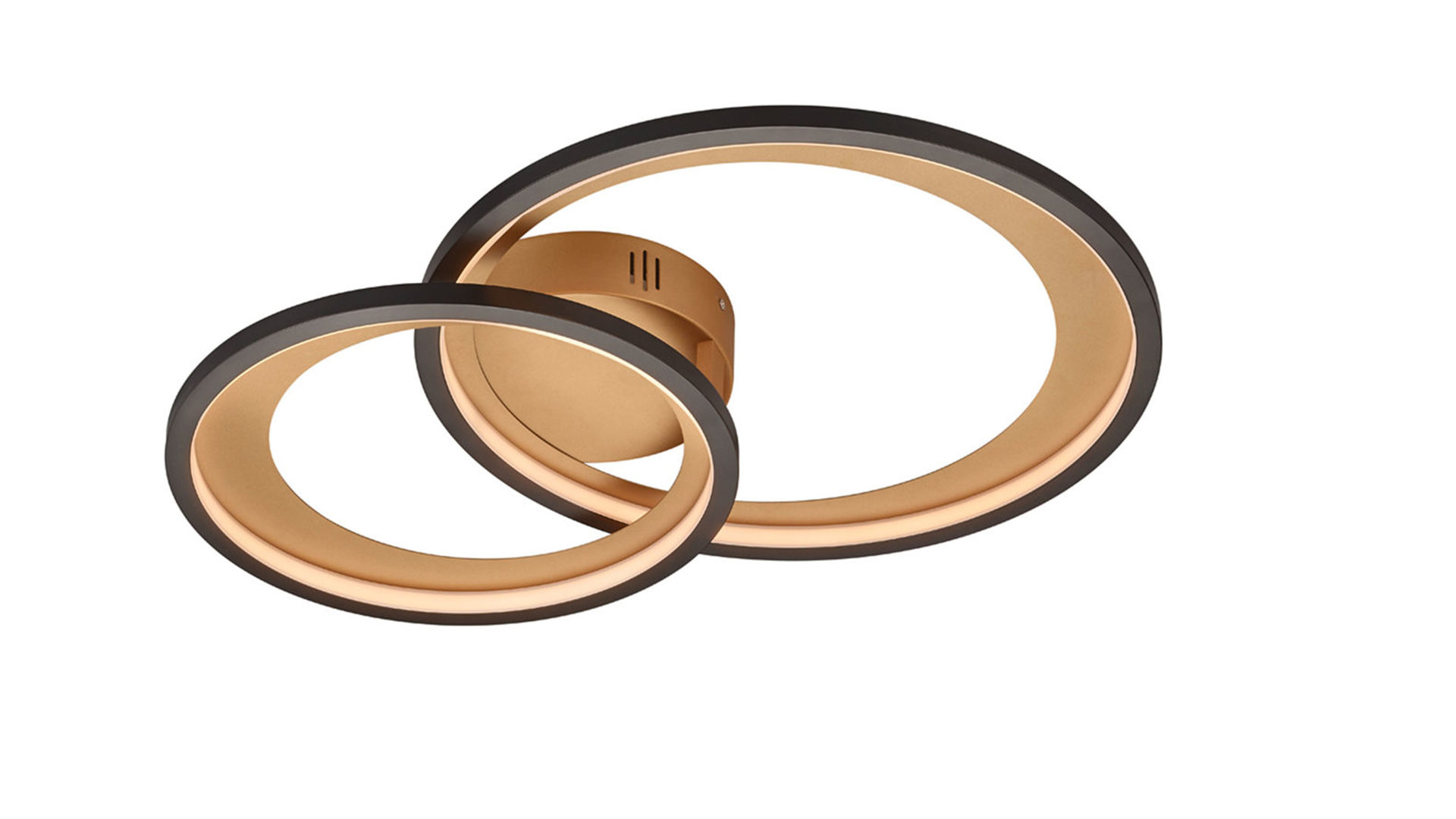 Die TRIO Deckenlampe Granada verbindet mattschwarzes und goldfarbenes Metall.