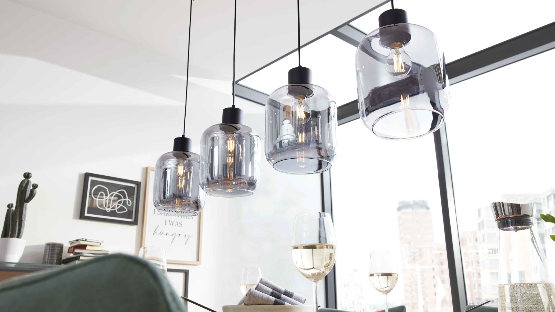 Die elegante Hängelampe aus der Interliving Leuchten Serie 9341 bringt modernen Industrie-Charme in dein Zuhause. Mit mattschwarzem Metall und rauchfarben verspiegeltem Glas vereint sie Eleganz und Coolness in einem klaren, geradlinigen Design. Ob über dem Esstisch, in offenen Wohnbereichen oder über deiner Kücheninsel – diese Pendelleuchte wird zum stylischen Highlight in jedem Raum.