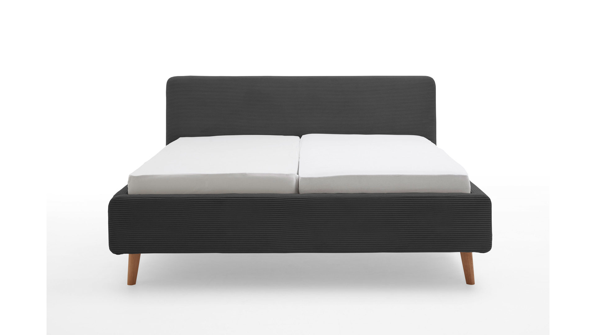 Das Polsterbettgestell Mattis begeistert durch die elegante Optik sowie die hervorragende Material- und Verarbeitungsqualität. Es kombiniert einen anthrazitfarbenen Breitcord-Bezug mit eichefarbenen Holzfüßen. Sowohl die Bettseiten als auch das Polsterkopfteil sind glatt bezogen. Letzteres lädt Sie ein, sich anzulehnen, wenn Sie abends im Bett vor dem Schlafen noch fernsehen oder in einem Buch lesen.
