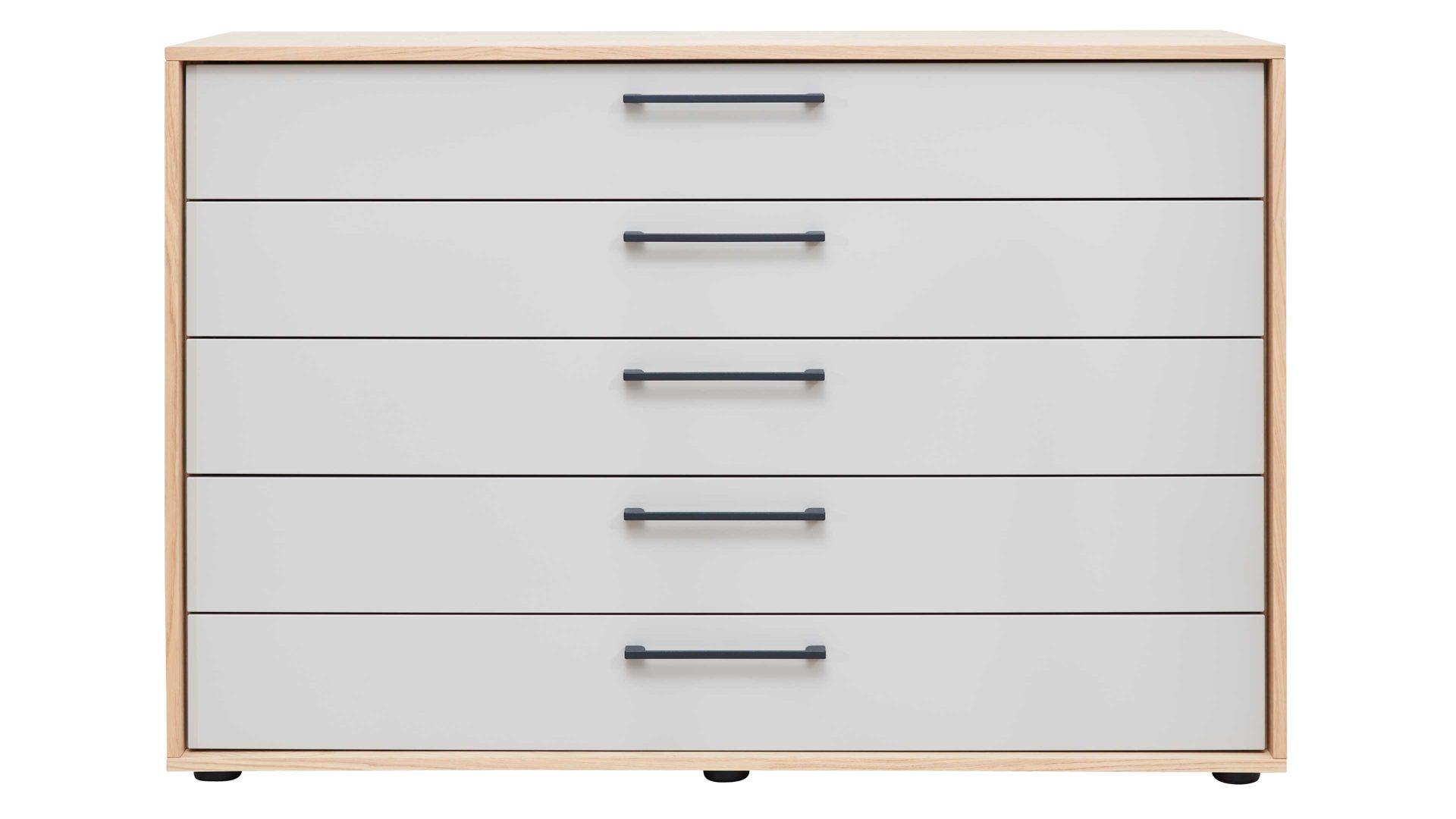 Weiß & Balkeneiche - fünf Schubladen, Breite ca. 124 cm