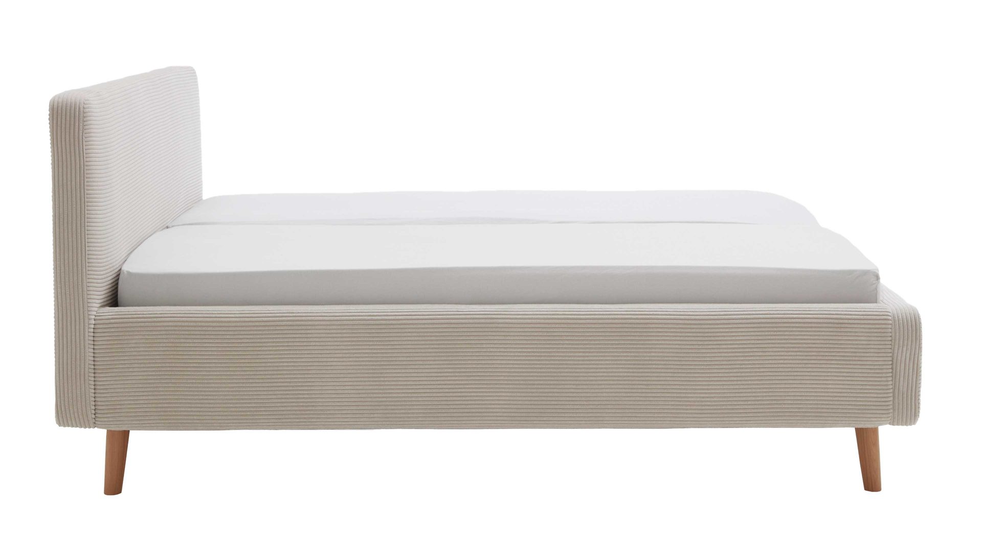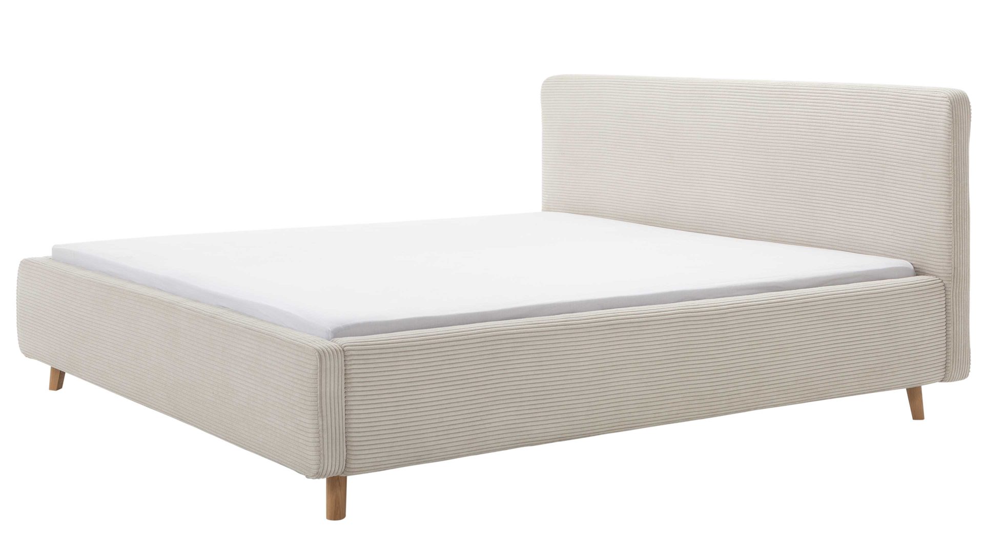 Das Polsterbettgestell Mattis mit Bettkasten begeistert durch die elegante Trendoptik sowie die exzellente Material- und Verarbeitungsqualität. Es kombiniert eichefarbene Holzfüße mit einem beigefarbenen Breitcordbezug. Sowohl die Bettseiten als auch das Polsterkopfteil sind glatt bezogen. Letzteres lädt Sie ein, sich anzulehnen, wenn Sie abends im Bett vor dem Schlafen noch fernsehen oder in einem Buch lesen.