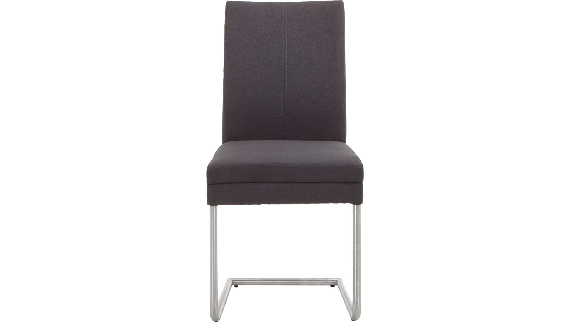Mit dem Kunstlederbezug in warmem Dunkelbraun strahlt er Wärme und Eleganz aus - Eigenschaften, die jeden Raum und Stil aufwerten. Das Edelstahl-Rundrohrgestell sorgt durch die klassische Farbgebung für eine harmonische Abrundung und gewährleistet dank des robusten Materials die beim Sitzen und lockeren Schwingen erforderliche Stabilität.
