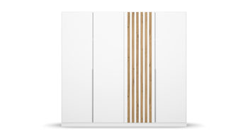 Mit dem rauch BLUE Lamella - Drehtürenschrank wird Ihr Schlafzimmer zum stilvollen Hingucker. Die weißen Kunststoffoberflächen harmonieren perfekt mit den Eiche artisanfarbenen Absetzungen und den alufarbenen Griffen. Der Schrank bietet mit seinen Maßen von ca. 226 x 210 x 54 cm (BxHxT) genügend Stauraum für Ihre Kleidung und Accessoires. Zwei Einlegeböden und zwei Kleiderstangen sorgen für eine optimale Organisation Ihrer Garderobe.