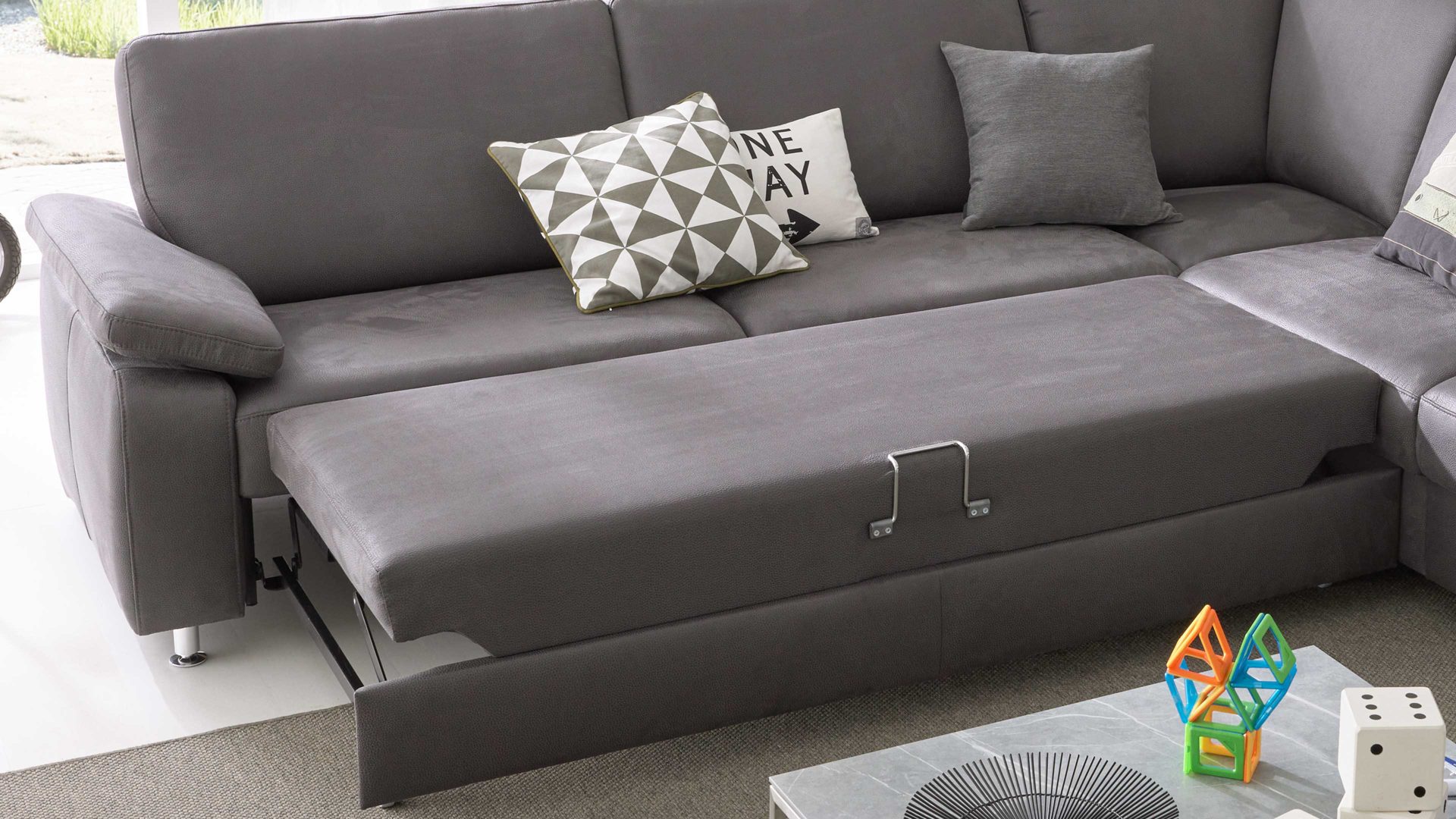 Indem Sie den Sitz nach vorne ausziehen, erweitern Sie die standardmäßige Sitzfläche um ca. 155 x 123 cm (BxL). Die Federholzleisten und die mit hochwertigem Matratzendrell bezogene Liegefläche sorgen für guten Liege- und Schlafkomfort. Als besonders praktisch erweist sich die Bettfunktion, wenn Gäste bei Ihnen übernachten.