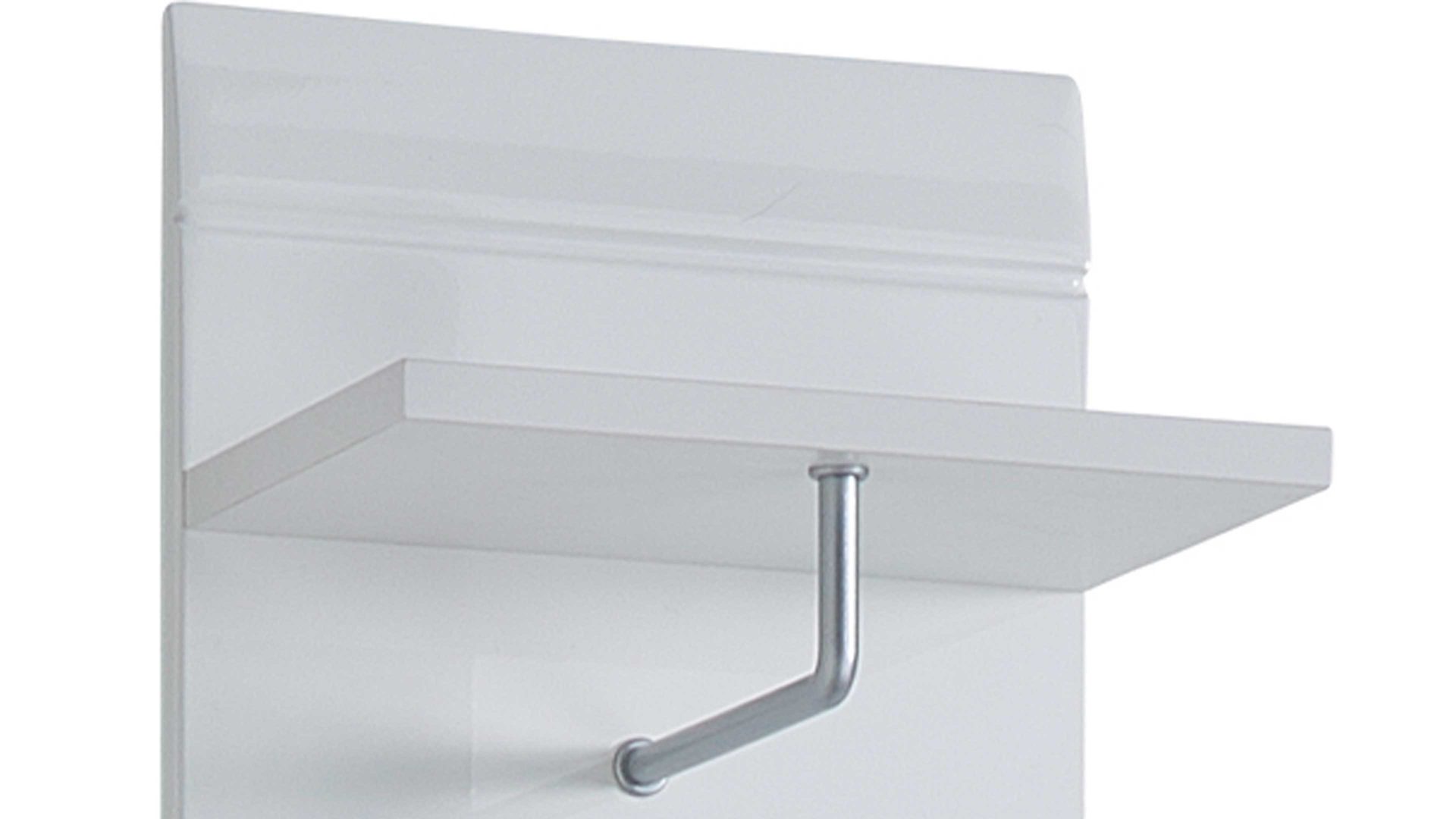 Verleihen Sie mit diesem Garderobenpaneel Ihrem Eingangsbereich eine einladende Atmosphäre und schaffen Sie gleichzeitig eine stilvolle Möglichkeit zur ordentlichen Kleideraufbewahrung. Die Wandgarderobe präsentiert sich mit einem Korpus aus MDF mit weißer Hochglanzoberfläche und auffällig schöner Rillenfräsung. Dabei bieten der Ablageboden, die Kleiderstange sowie drei Kleiderhaken ausreichend Platz für Ihre Kleidung. Jacken, Schals und Mäntel hängen Sie knitterfrei auf, während Sie Hüte und Mützen auf der oberen Ablagefläche des Dielenmöbels verstauen.