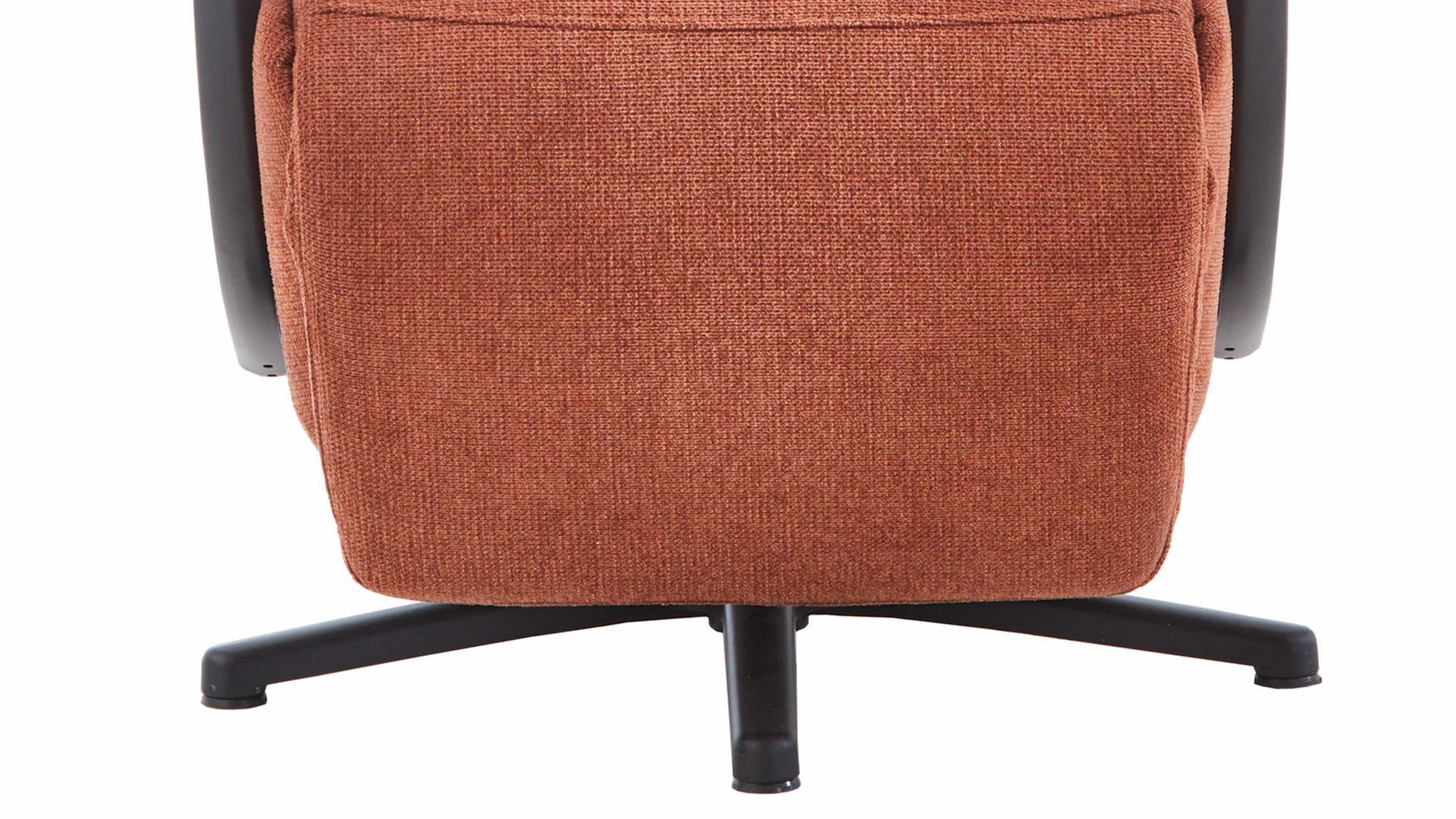 Sein kupferfarbener Flachgewebebezug verleiht dem Sessel eine warme Ausstrahlung im zeitlosen Design. Den Sitz trägt ein mattschwarzer Sternfuß aus Metall. Die ebenfalls mattschwarze Metall-Armlehne bringt eine weich gepolsterte Stoffauflage mit, für noch mehr bequemes Entspannen etwa beim Lesen oder als TV-Sessel zum Fernsehen.