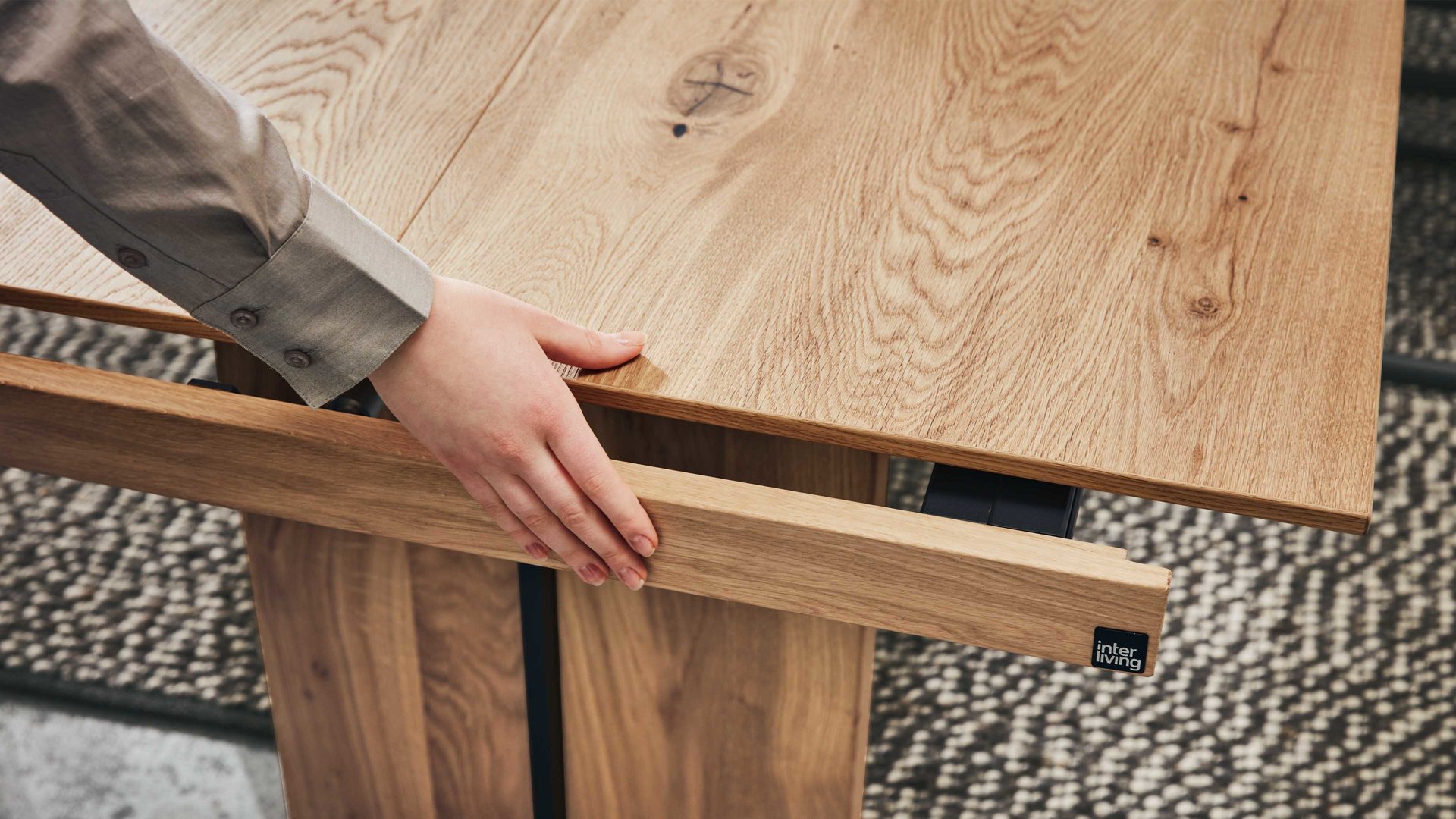 Der Frontauszug mit Klappeinlage ist die ideale Ergänzung für die 100 cm tiefen Esstische der Interliving Esszimmer Serie 5604. Gefertigt mit hell geöltem Eiche-rustico-Echtholzfurnier, fügt sich die Erweiterung optisch perfekt in das Tischdesign ein. Mit einer Größe von ca. 65 x 90 cm (B/LxT) bietet dir die Klappeinlage deutlich mehr Platz – ideal, wenn du häufiger größere Runden bewirtest. Durch den praktischen Auszug kannst du deinen Esstisch so erweitern, dass bequem bis zu 14 Personen Platz finden.