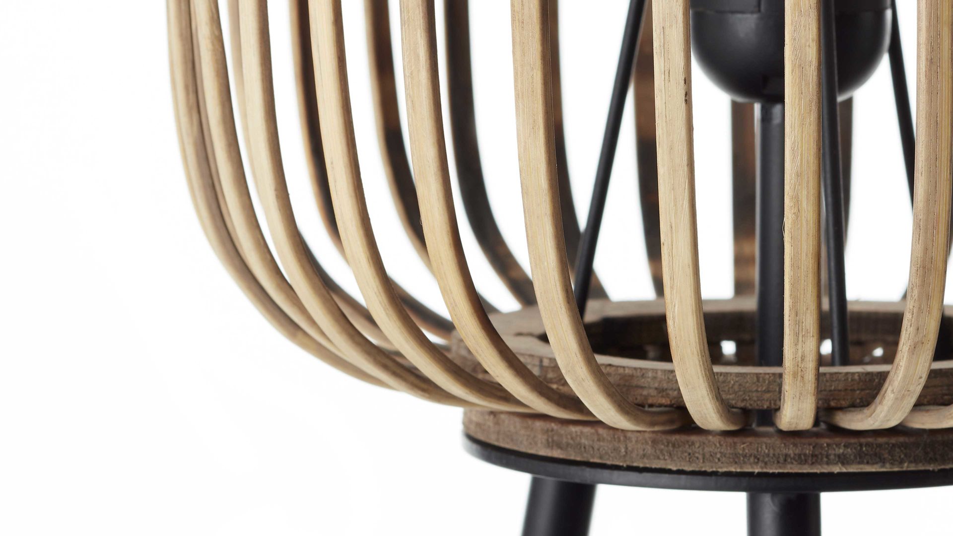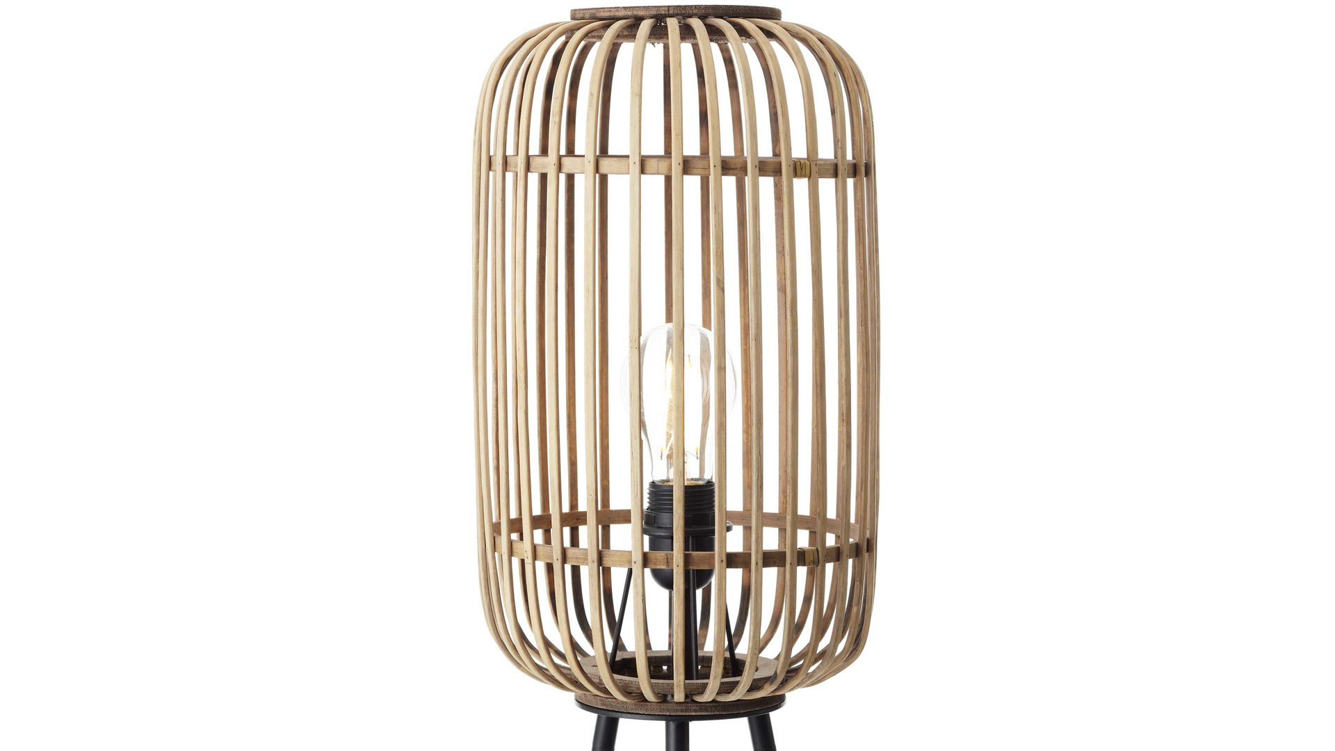 Details schwarze Metall-Lampenfüße hellbrauner Bambus-Lampenschirm Schnurschalter     Maße ca. 45 x 130 cm (B x ...