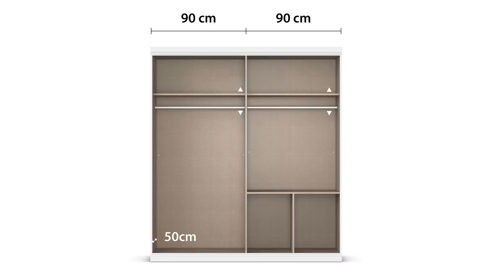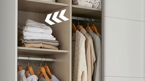 viel Stauraum auf zwei variabel verstellbaren Kleiderböden und zwei Metall-Kleiderstangen