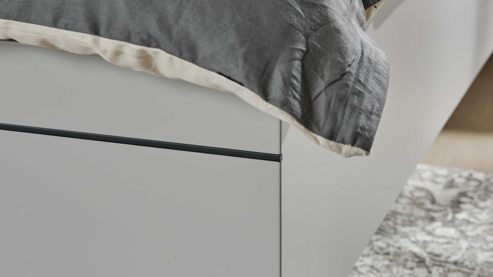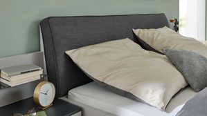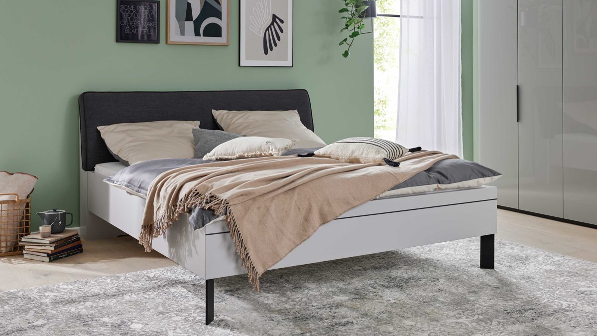 Das Bettgestell aus der Interliving Kleiderschrank Serie 1207 kombiniert modernes satingraues Lackdesign mit einem gemütlichen Polsterkopfteil Luna im anthrazitfarbenen Recyclingstoff Stone. Eine Lisene in Anthrazit am Fußteil setzt elegante Akzente und rundet das Gesamtbild harmonisch ab. Mit einer großzügigen Liegefläche von ca. 180 x 200 cm (BxL) lädt dieses Doppelbett zu entspanntem Schlafkomfort ein.