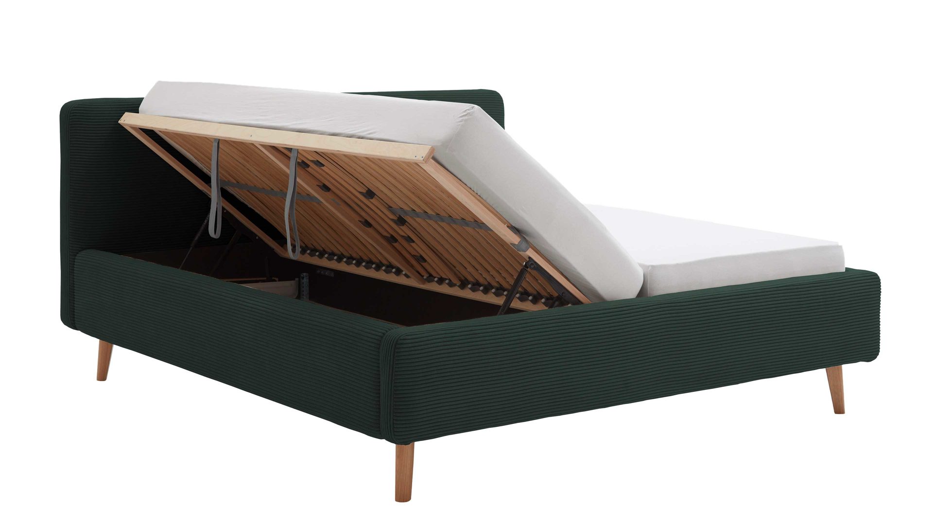 dunkelgrüner Breitcord Poso 14 & Holzfüße - Liegefläche ca. 160 x 200 cm