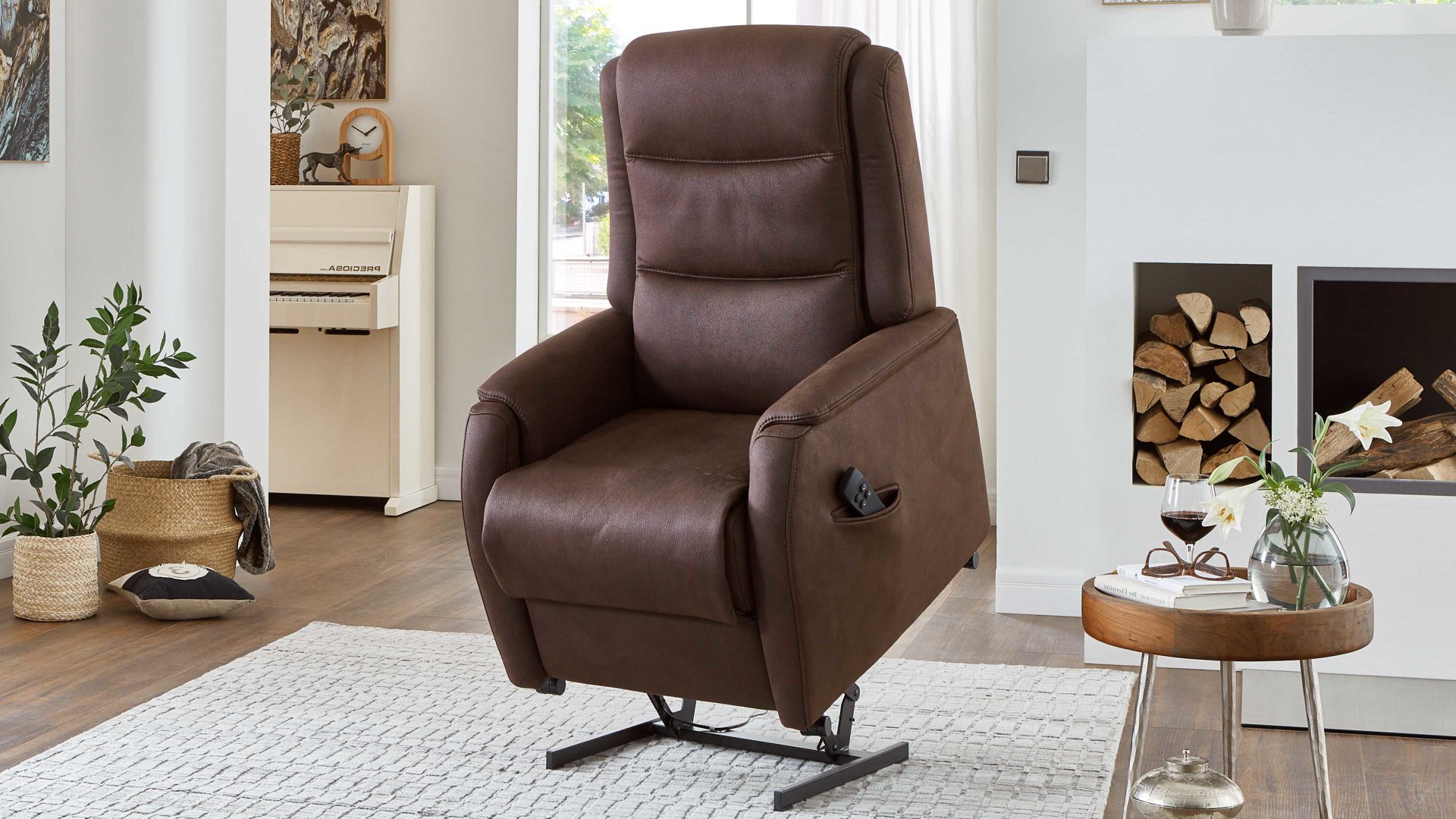 Dank der bequemen Federkernpolsterung auf einer Wellenunterfederung im Sitz und der hochwertigen Polyätherschaumpolsterung in der Rückenlehne sorgt der Fernsehsessel mit der Ergonomie M für hohen Komfort. Dazu tragen auch die motorischen Relaxfunktionen bei: Durch den integrierten Motor können Sie die Rückenlehne und Beinauflage einfach per Knopfdruck stufenlos synchron verstellen. Ein weiterer funktionaler Höhepunkt ist die motorische Aufstehhilfe. In der praktischen Seitenteiltasche des leger gepolsterten Relaxsessels haben Sie unter anderem Platz für Ihre TV-Fernbedienung.