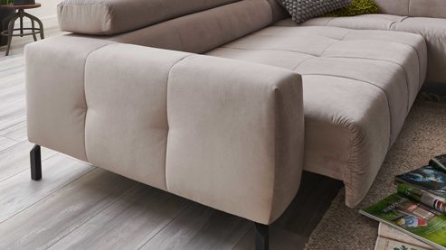 Durch leichtes Anheben der Rückenlehne und gleichzeitiges Vorziehen des Sitzes können Sie die Sitztiefe je nach individuellen Vorlieben stets zwischen ca. 109 und 130 cm einstellen. Alternativ ist die Funktion auch motorisch erhältlich - für noch mehr Komfort.
