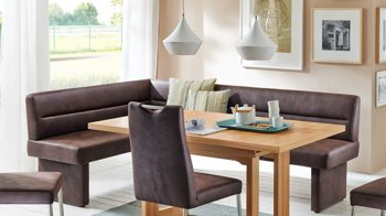In Ihrer Küche machen Sie es sich auf dieser wunderbaren Modulmaster Eckbank Game 1 bequem. Stilvoll und elegant präsentiert sich die Dinnerbank mit einem dunkelbraunen Microfaserbezug, der sich mit den Kontrastnähten harmonisch in Ihre Kücheneinrichtung einfügt. Versammeln Sie Familie und Freunde um Ihren Küchentisch auf der Küchenbank, die Sie über Eck stellen und so auch ungenutzten Raum optimal ausfüllen.