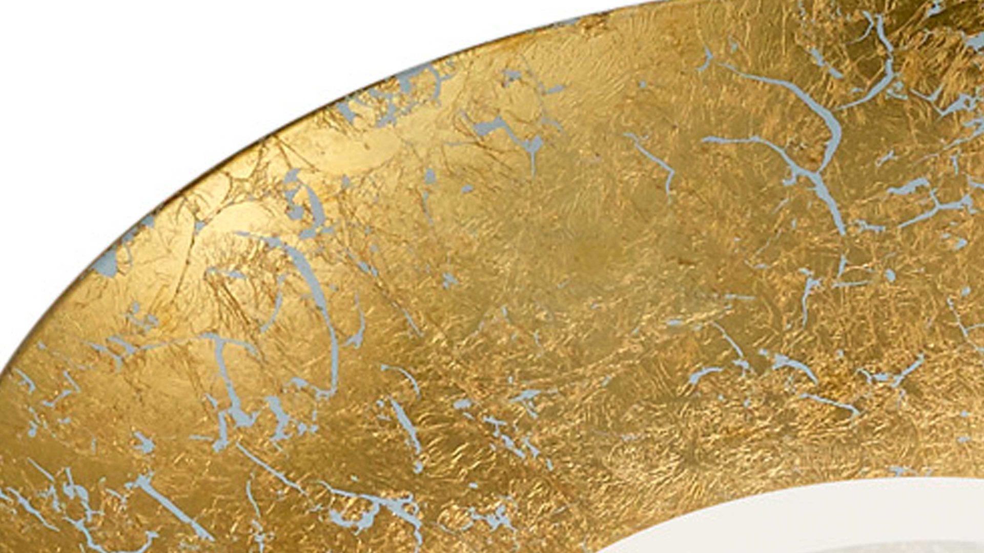 Die runde TRIO LED-Deckenleuchte Chiros ist aus goldfarbenem Metall hergestellt. Durch die edle, außergewöhnliche Kombination der Form, des Materials und der Farbe mit der bewusst eingearbeiteten Gebrauchsspuren-Optik strahlt die Lampe antiken Retro-Charme aus. Besonders fantasievolle Betrachter erinnert die Leuchte möglicherweise auch an einen faszinierenden Weltall-Planeten für zuhause.