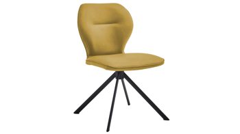 sonnengelber Lederbezug mit einer beigen Kontrastnaht und mattschwarzen Metallfüßen