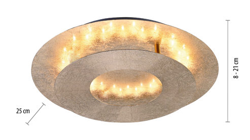 Obendrein bestimmten Sie auch die Höhe der Leuchte zwischen ca. 8 bis 20 cm. Die Lampe ist aus goldfarbenem Metall mit einer Hammerschlaglackierung gefertigt. Damit Ihr Wohnzimmer oder der Eingangsbereich direkt im neuen Licht erstrahlt, ist das LED-Board mit 6 Watt, 570 Lumen und 3.000 Kelvin inklusive. Das enthaltene Leuchtmittel entspricht der Energieeffizienzklasse G