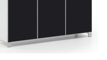 Die VOSS MÖBEL Schuhkommode Santina ist modern-elegant designt. Mit dem klassisch weiß lackierten Korpus und den anthrazitfarbenen Glasfronten sorgt sie für einen feinen, attraktiven Hell-Dunkel-Kontrast in Ihrem Flur. Aluminiumfarbene Griffe runden das edle Erscheinungsbild des optisch wie funktional ansprechenden Schuhschranks stilsicher ab.