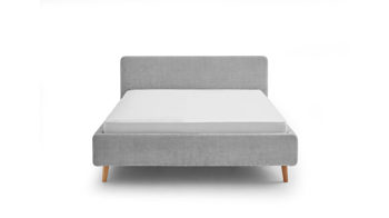 Das Polsterbettgestell Mattis begeistert durch die elegante Optik sowie die hervorragende Material- und Verarbeitungsqualität. Es kombiniert einen grauen Chenille-Bezug mit eichefarbenen Holzfüßen. Sowohl die Bettseiten als auch das Polsterkopfteil sind glatt bezogen. Letzteres lädt Sie ein, sich anzulehnen, wenn Sie abends im Bett vor dem Schlafen noch fernsehen oder in einem Buch lesen.