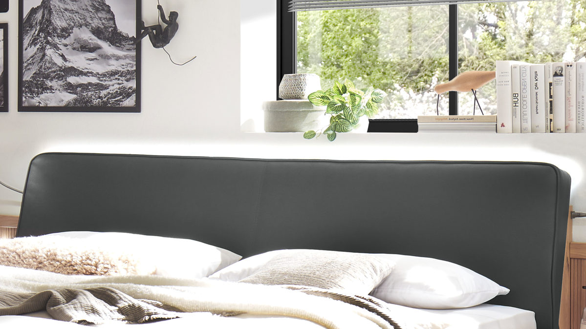 Bettgestelle sind in vier Breiten, vier Längen und zwei Kunstlederfarben erhältlich