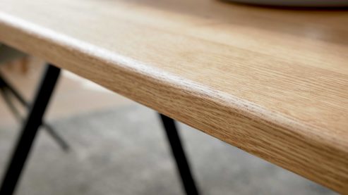 Astige Eiche ist ein lebendiges Material mit Charakter. Die geölte Oberfläche schützt das Holz, betont zugleich seine individuelle Struktur und sorgt für eine angenehme Haptik. Der Tisch ist damit nicht nur ein funktionales Möbelstück, sondern auch ein Ausdruck natürlicher Wohnkultur – langlebig, stilvoll und zeitlos schön.