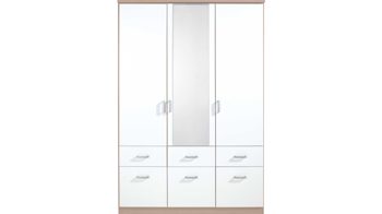 Der Eckkleiderschrank-Aufsatz Bremen des Schrank-Programms von rauch BLUE bietet sich für die Kombination mit verschiedenen anderen Schlafzimmermöbeln dieser Serie an, die für den Einbau in einer Zimmerecke vorgesehen sind. Durch die Kombination aus alpinweißen Elementen und Teilen in Eiche Sonoma-Nachbildung macht dieser Schrank einen interessanten Eindruck. Als Oberflächenmaterial kommt dabei robuster Kunststoff zum Einsatz, was eine leichte Pflege garantiert.