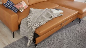 Eine lederbezogene Liegefläche ist separat gegen Mehrpreis bestellbar.