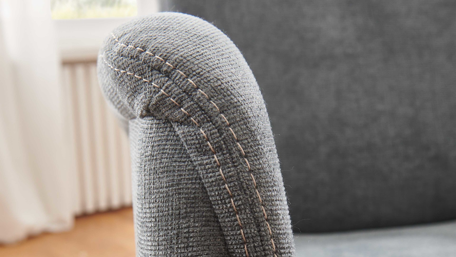 stalfarbener melierter Stoffezug mit Kontrast-Doppelsteppnaht