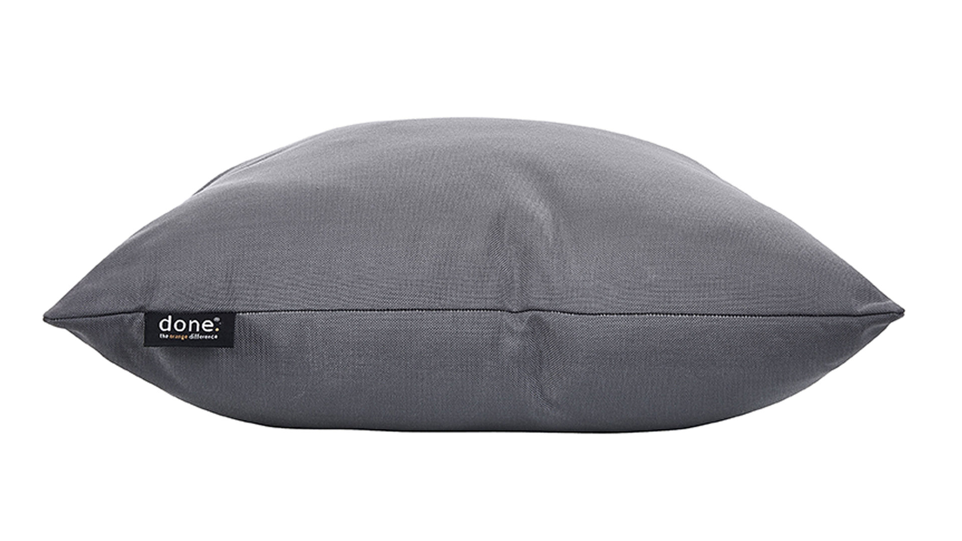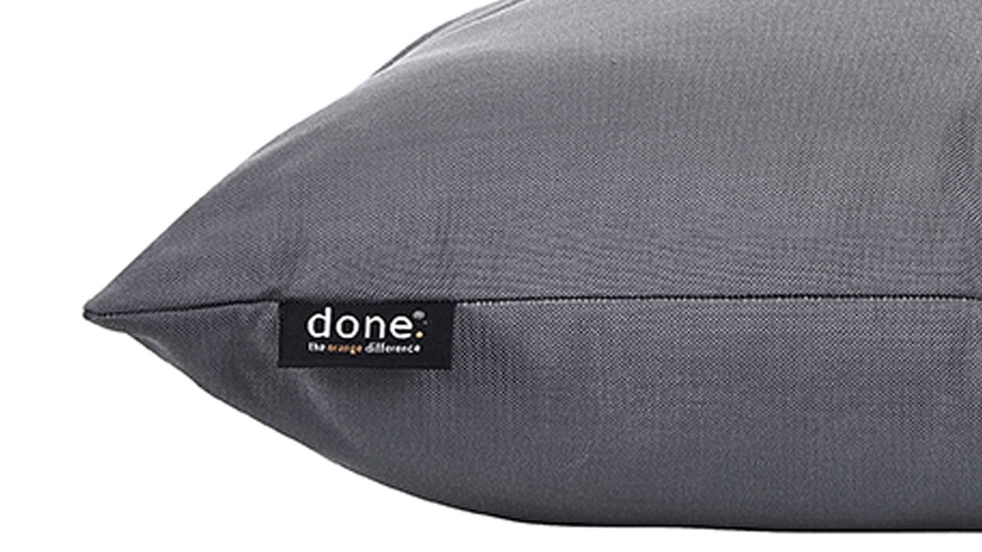 Extra großes Outdoorkissen Cushion Outside mit wetterfestem dunkelgrauen Olefinbezug von done.®. Das Kissen setzt tolle, farbliche Akzente im Garten oder auf dem Balkon. Der Bezug macht das Kissen UV- und wasserbeständig, langlebig, flüssigkeitsabsorbierend und atmungsaktiv. Der Kissenbezug trocknet schnell und ist leicht zu reinigen.