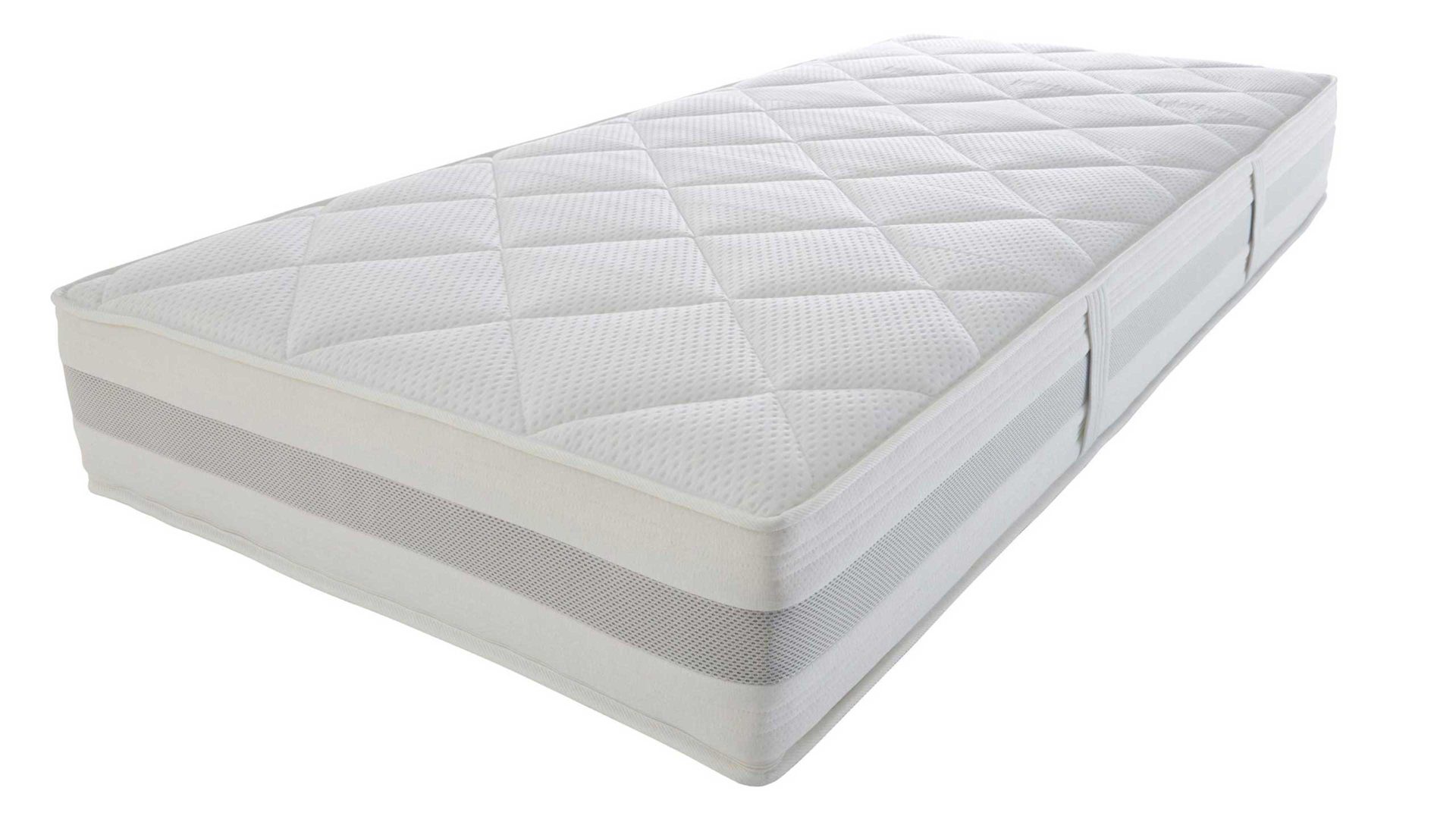 Erlebe erholsamen Schlaf mit der Interliving Matratze Medikontur 1913, die durch ihre hochwertige Verarbeitung und perfekt aufeinander abgestimmten Materialien überzeugt. Mit einem 7-Zonen-AQUAPUR®-Taschenfederkern, einer zusätzlichen Viskoplatte im Noppenprofil und einer integrierten Sitzkantenstabilisierung bietet sie optimalen Liegekomfort und ergonomische Unterstützung – ideal bei einem Körpergewicht bis ca. 120 kg in der Festigkeit H3. Die Liegefläche beträgt ca. 100 x 200 cm (BxL), bei einer Höhe von ca. 22 cm.