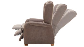 Dank der legeren Federkernpolsterung auf hochwertiger Wellenunterfederung im Sitz sowie der Schaumpolsterung im Rücken sitzen Sie auf dem edlen Ohrenbackensessel der Ergonomiegröße M sehr bequem. Dazu tragen auch die verschiedenen Funktionen bei. Der TV-Sessel bietet die manuelle Kopfpolsterverstellung mit Rastbeschlag und Rückholfeder und ermöglicht überdies die manuelle Verstellung der Rückenlehne und des Fußteils bis zur Liegeposition. Im komplett ausgefahrenen Zustand beträgt die Liegelänge ca. 176 cm.