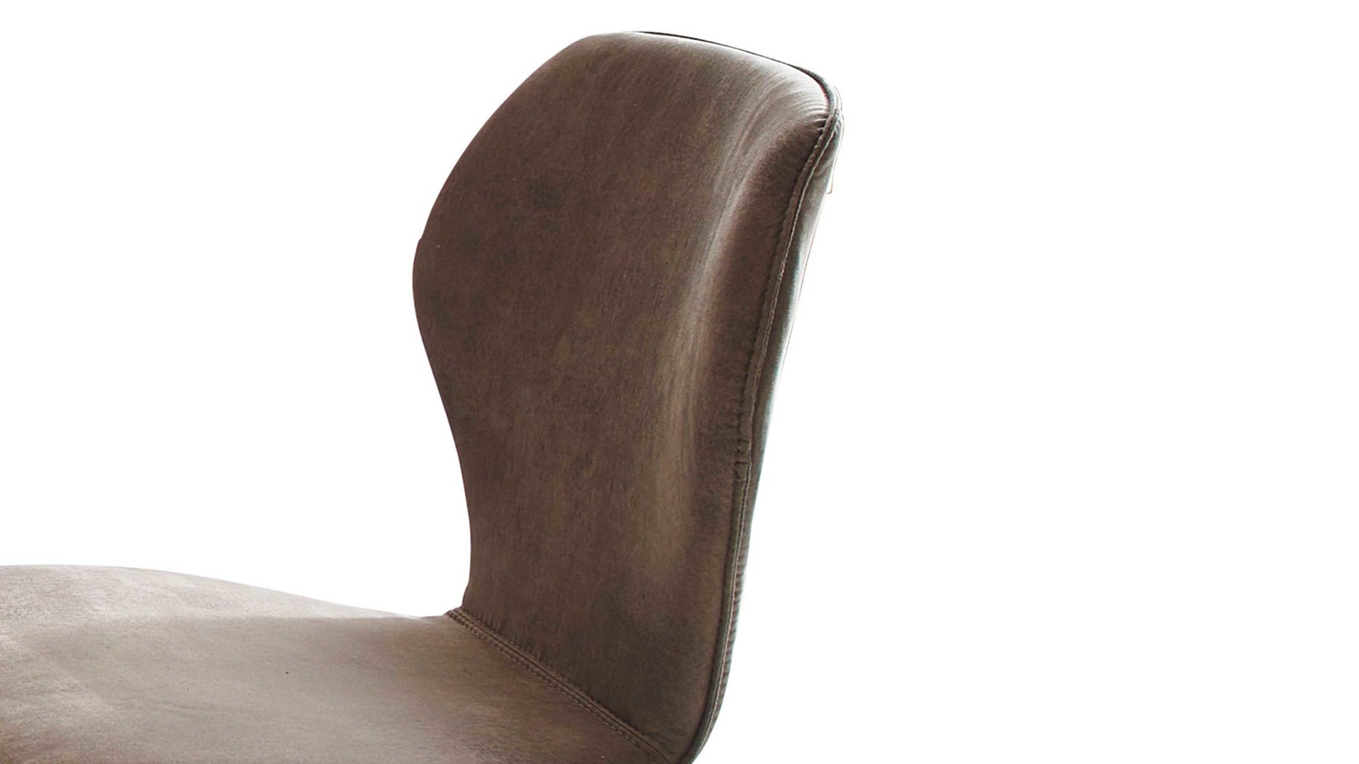 Er verfügt über einen moccafarbenen Stoffbezug, der mit nahezu jedem Einrichtungsstil harmoniert. Ein schwarzes Eisen-Kufengestell verleiht ihm zuverlässige Stabilität. Bei Maßen von ca. 47 x 83 x 41 cm (BxHxT) weist der Esszimmerstuhl eine Sitzhöhe von ca. 48 cm sowie eine Sitztiefe von ca. 48 cm auf.
