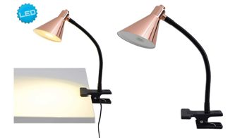 Die näve LED-Klemm-Tischleuchte Pinhead ist hochwertig verarbeitet und modern-elegant designt. Sie offenbart eine klassisch-schwarze Basis und einen edel-kupferfarbenen Metall-Lampenschirm. Das Material präsentiert sich enorm robust und widerstandsfähig und macht dabei optisch einiges her. Die spezielle Farbgebung verleiht der Klemmlampe ein nobel anmutendes Flair, das sich in den jeweiligen Raum überträgt. Praktischerweise lässt sich die Leuchte in verschiedenste Einrichtungsstile wunderbar stimmig integrieren.
