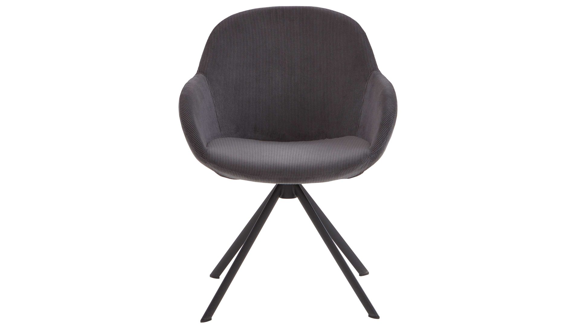 Der hochwertige NIEHOFF Armlehnstuhl Dacapo verkörpert moderne Eleganz und Gemütlichkeit. Mit dem mattschwarz lackierten Stativgestell aus robustem Eisen sowie dem trendigen anthrazitfarbenen Cordbezug überzeugt er sowohl optisch als auch qualitativ. Dank der Ergo-Schale mit Formschaum bietet der Designerstuhl für das Esszimmer extra hohen Sitzkomfort.