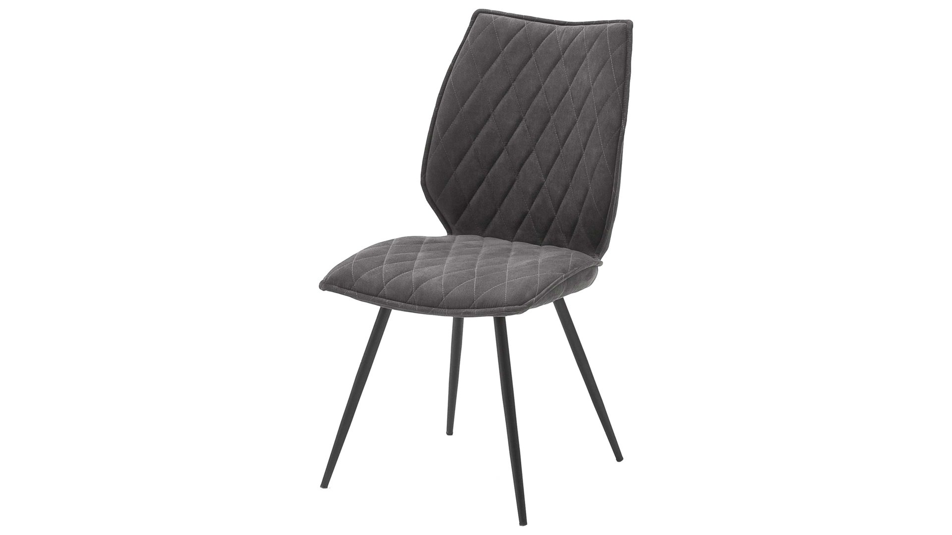 Der Polsterstuhl Navarra kommt in einem ausdrucksstarken Design: Sitz- und Rückenfläche weisen eine dekorative Rautensteppung auf. Sie werden rundum von einem Stoffbezug im Antiklook umhüllt. Der Bezug in gedecktem Anthrazit trifft auf ein ebenfalls anthrazitfarben lackiertes und konisch zulaufendes Rundrohrgestell.