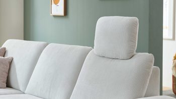 Sie lässt sich manuell in der Höhe und Neigung verstellen. Die mitgelieferte Kopfstützen-Vorrichtung aus robustem verchromten Metall ermöglicht die stufenlose Fixierung der Kopfstütze, deren Maße sich auf ca. 44 x 32 x 16 cm (BxHxT) belaufen. Mit dem naturweißen Feincordbezug harmoniert das Kopfpolster perfekt mit den Couches im gleichen Design.