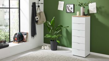 Schubladenkommode aus der Interliving Kleiderschrank Serie 1208 – stilvolle Kombination aus Alpinweiß und Artisan-Eiche