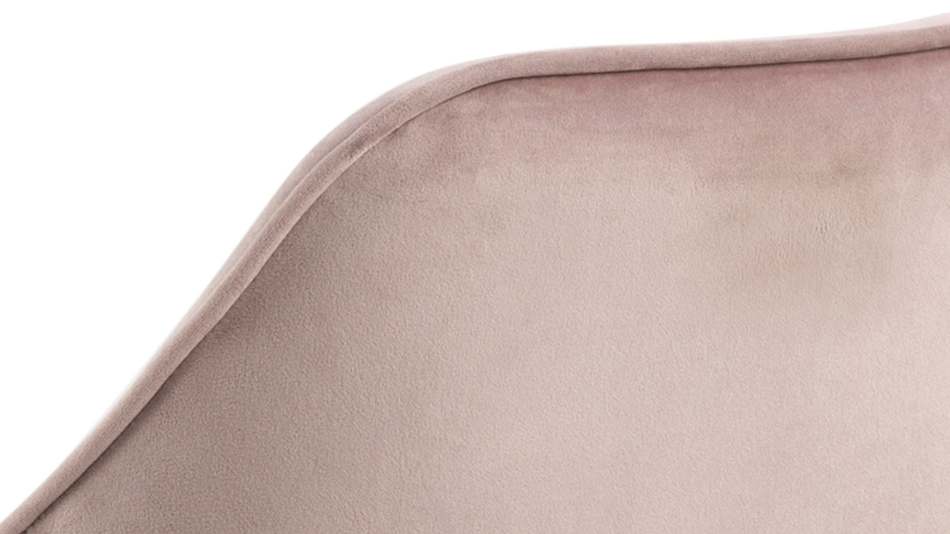 Dabei harmoniert der Polsterstuhl in seiner sanften Formensprache mit zahlreichen Einrichtungsstilen. Moderne Geradlinigkeit ergänzt er ebenso stimmig wie den beliebten Vintage-Trend. Auch farblich erlaubt der Esszimmerstuhl Brooke angenehme Freiheit beim Kombinieren: Dafür sorgt der Samtbezug in Pastellrosa, der die gesamte Sitzschale inklusive der bequemen Armlehnen weich umhüllt. Die rau pulverbeschichteten Metallfüße fließen in mattem Schwarz stimmig in das Gesamtbild ein.